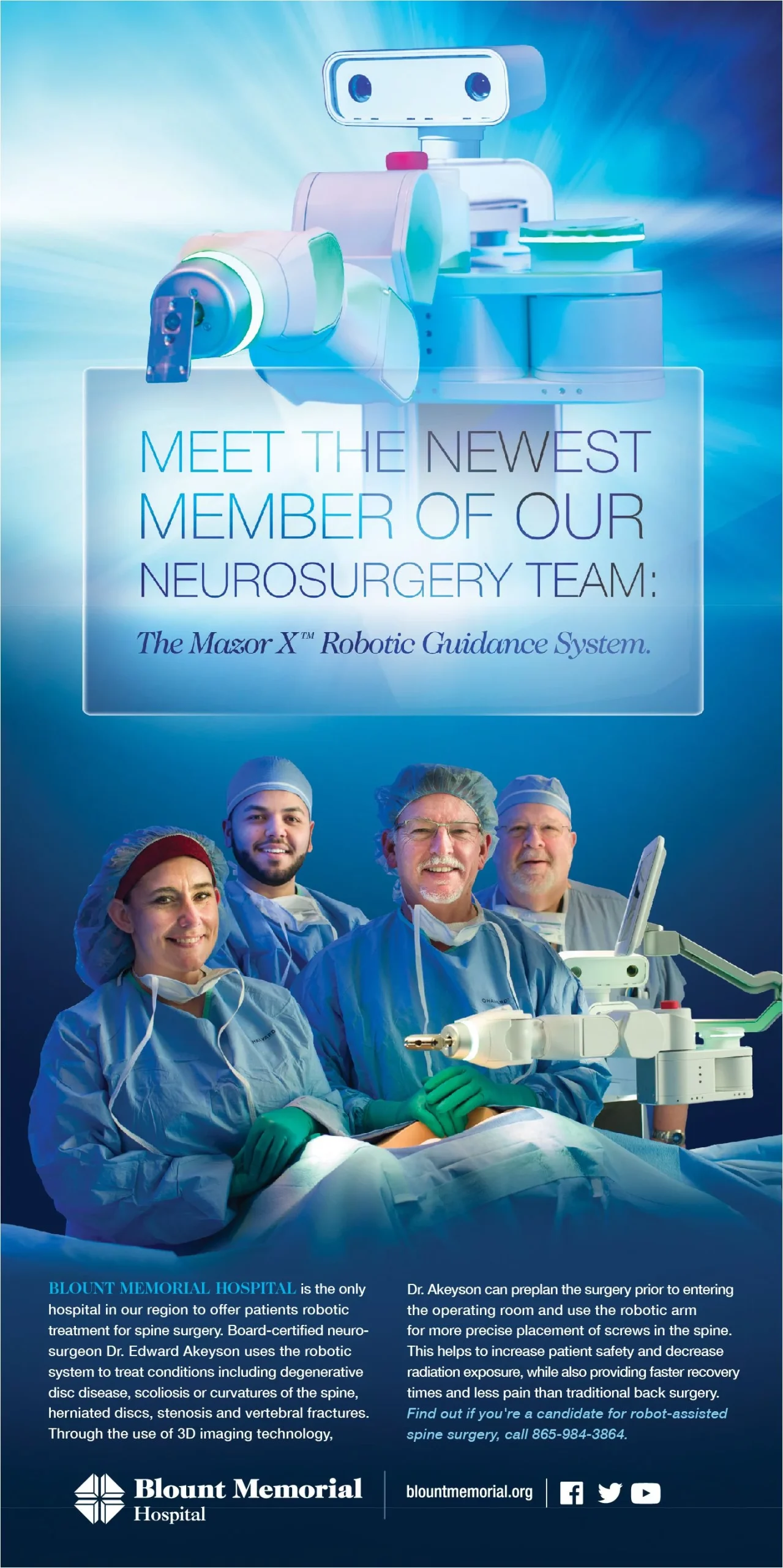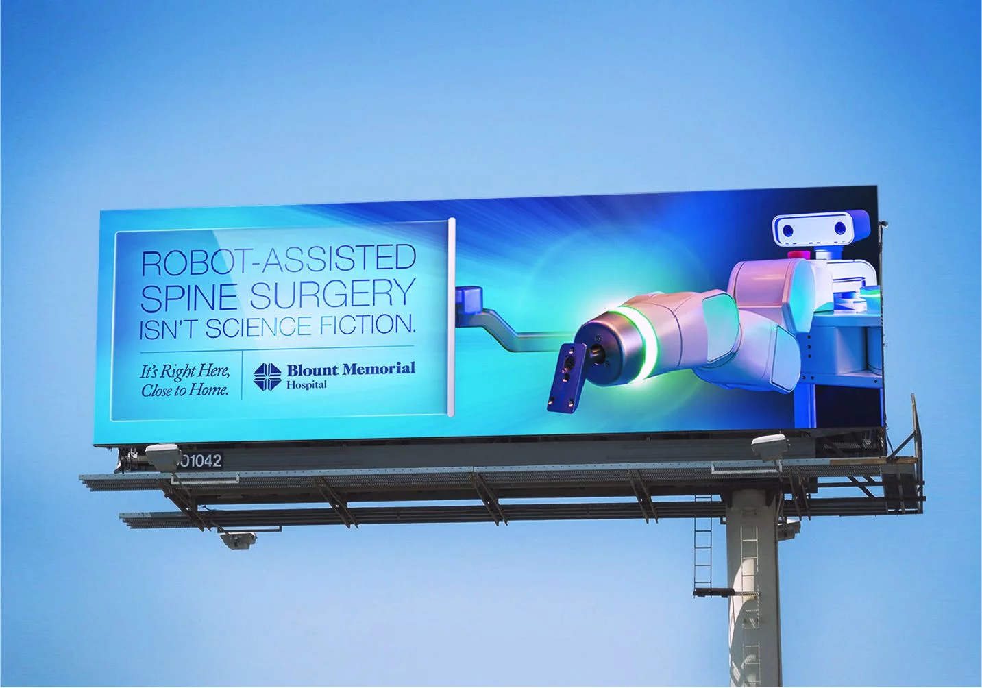 Blount Memorial Hospital is the only hospital in its region to offer patients robotic treatment for spine surgery. Visual Voice helped unveil this cutting edge technology through an advertising campaign with a backbone.